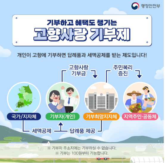 특별재난지역에 기부하며 세액공제와 답례품 혜택을 받을 수 있습니다.