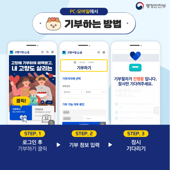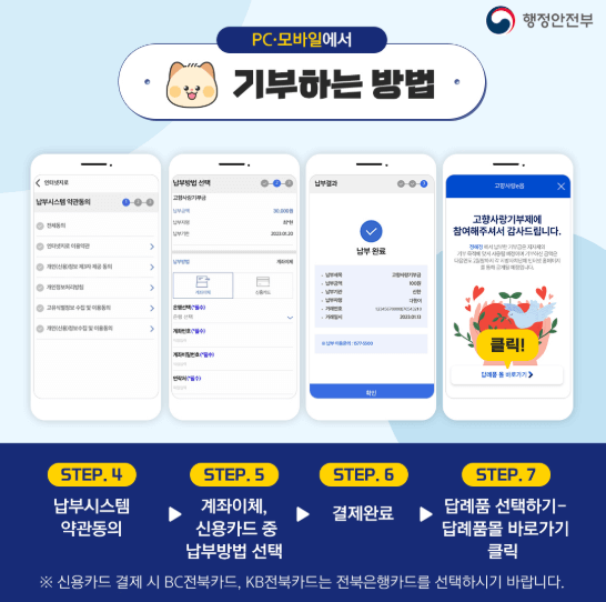 - 방법: 고향사랑e음 사이트 → 피해 지역 선택 → 기부금 납부 → 답례품(흑마늘 등) 선택.