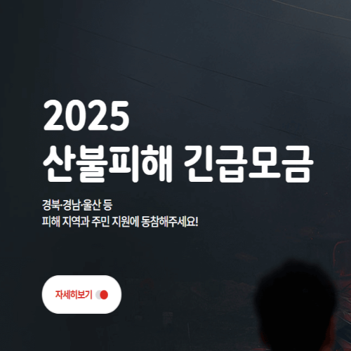 산불 피해 복구는 여러분의 참여로 시작됩니다. 금액이 크든 작든, 모든 기부가 이재민에게 큰 힘이 됩니다. 2025년 봄, 따뜻한 마음을 전하며 희망을 함께 만들어 보세요!