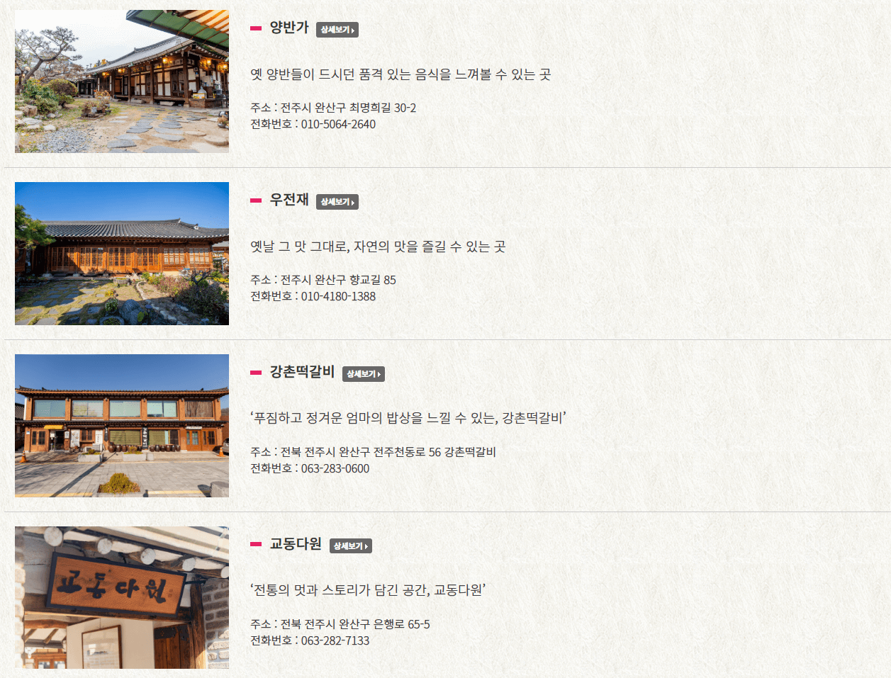 전주한옥마을 전통 음식점 요약 비교표