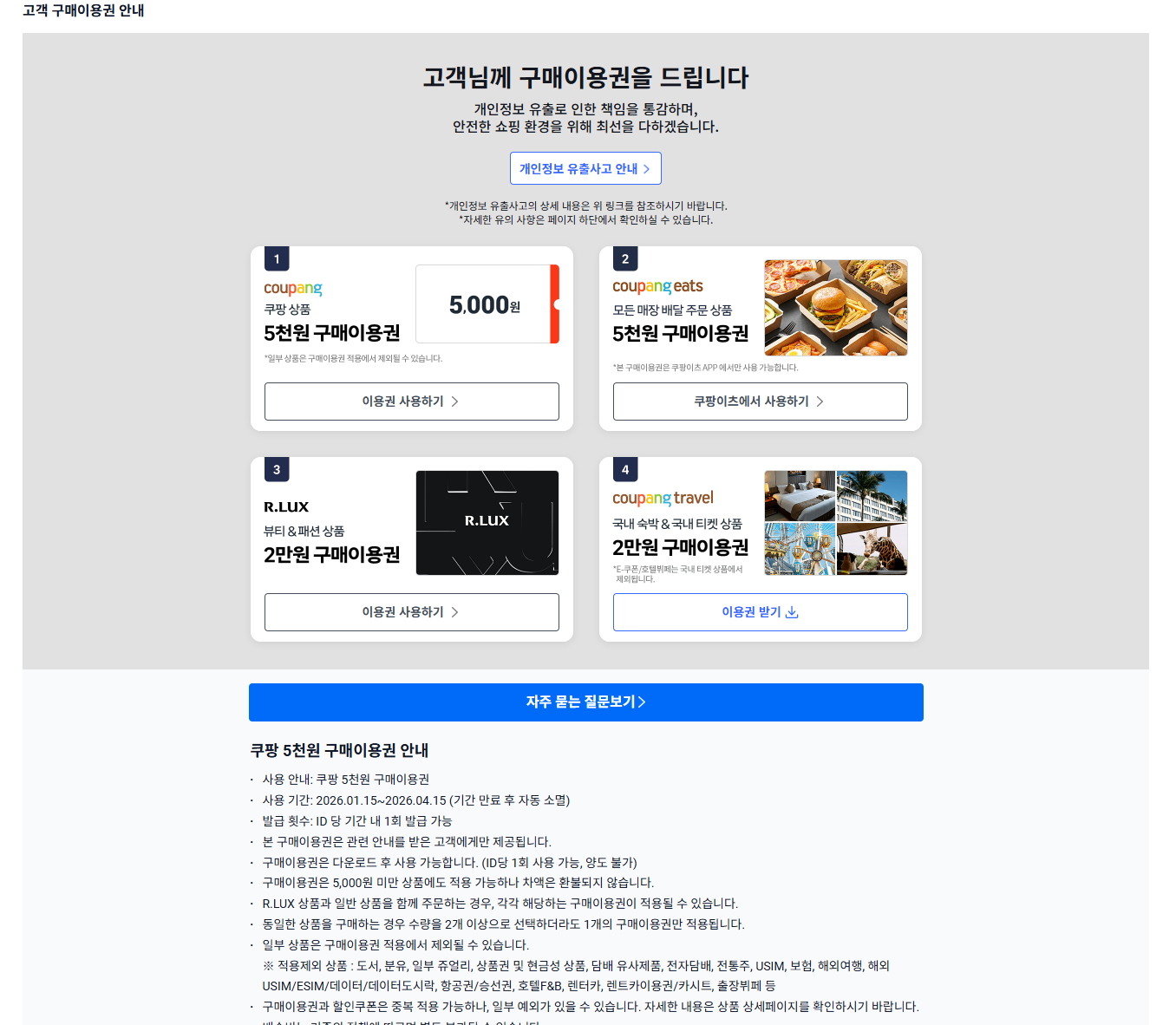 쿠폰 지급 안내 페이지로 이동할 수 있다.