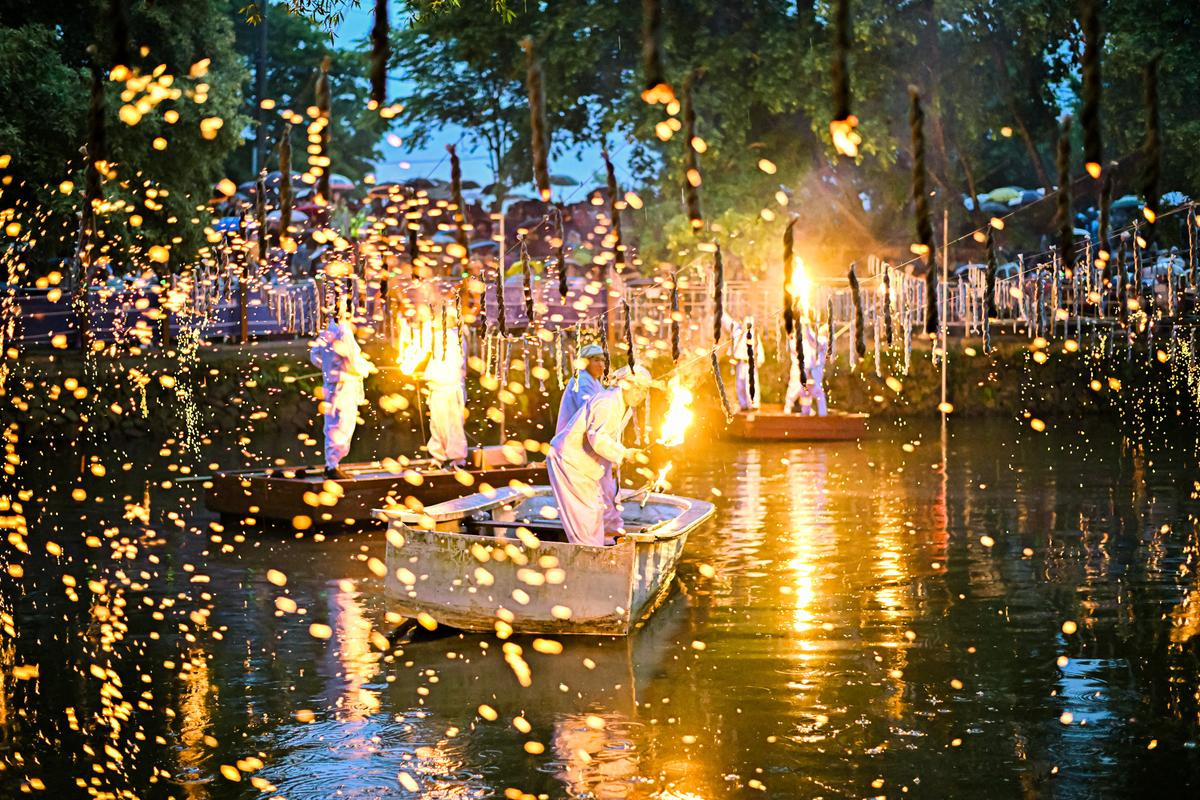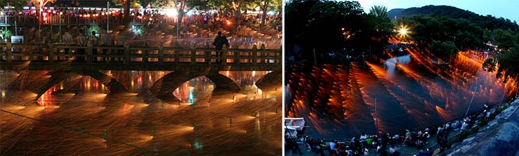 함안낙화놀이는 숯가루를 활용한 전통 불꽃 놀이로, 물 위로 떨어지는 불꽃이 꽃처럼 퍼지는 장관을 연출합니다. 특히 야간 점화 시간에는 많은 사람들이 감탄할 정도로 아름다운 풍경이 펼쳐집니다. 올해도 동일하게 사전 예약자만 입장이 가능하기 때문에 반드시 사전 준비가 필요합니다.